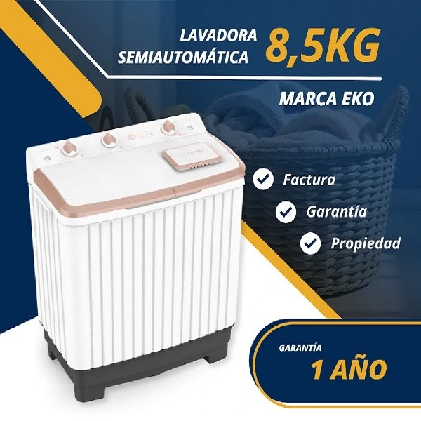 Lavadora Semiautomática EKO 8.5kg | Doble Tina | Ahorra Agua y Luz | 3 Programas | Garantía 1 Años